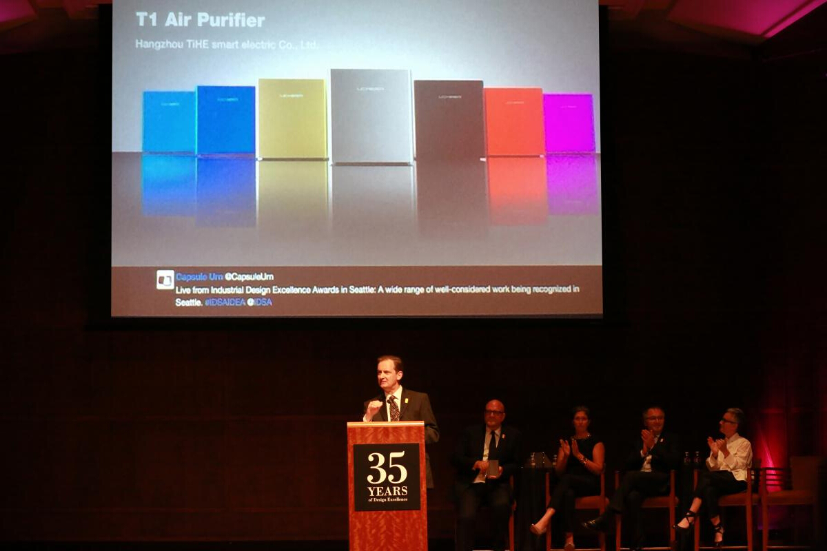 8月23日,美國工業(yè)設計協(xié)會IDSA(Industrial Designers Society of America) 在西雅圖宣布,UCHEER友好空氣凈化器T1產品獲得2015年度美國IDEA設計獎(INDUSTRIAL DESIGN EXCELLENCE AWARDS)。作為唯一一個受邀到現(xiàn)場領獎的華人團隊,鈦合智造在2014-2015一年時間內將三項國際至尊工業(yè)設計獎——德國紅點獎、德國IF設計大獎、美國IDEA設計大獎收入囊中,完成工業(yè)設計大滿貫。作為表彰,鈦合智造出品的UCHEER友好空氣凈化器T1將與其他獲獎作品一起入駐大名鼎鼎的亨利福特博物館,獲得永久收藏。