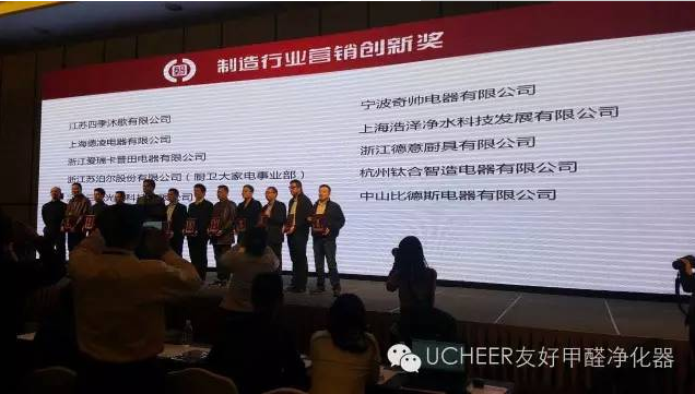 主辦方認(rèn)為:友好甲醛凈化器在營銷總經(jīng)理劉瀅的帶領(lǐng)下,成為了全球甲醛凈化器領(lǐng)跑者,更是卓有遠(yuǎn)見地進(jìn)行了甲醛凈化器市場品牌和渠道的戰(zhàn)略部署,打造友好甲醛凈化器立體化營銷新格局。此外,友好“除PM2.5只是基本功,去除甲醛才是真功夫”的營銷理念,為凈化器行業(yè)樹立了榜樣,憑借“凈化10小時,新房拎包住”營銷口號,獲選中國家電制造行業(yè)營銷“磐石獎”!可謂當(dāng)之無愧;