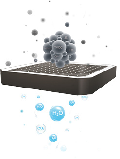 CH-cut醛催化分解技術(shù),俗稱“碳氫剪刀”,利用納米級功能性催化劑材料的催化作用,在室溫下“剪斷”甲醛、苯等TVOC有害氣體的碳氫鍵,使空氣中的氧其與分解鏈發(fā)生化學(xué)反應(yīng),將甲醛、苯等TVOC轉(zhuǎn)化為二氧化碳和水。